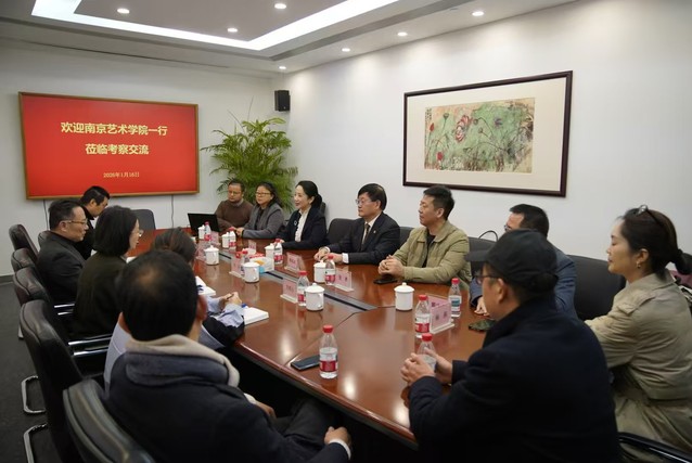 1月16日,調(diào)研組一行走進(jìn)劉海粟美術(shù)館,參觀館內(nèi)精品畫展。隨后,張捷一行與劉海粟美術(shù)館館長(zhǎng)郁振宇等舉行座談,雙方就館校合作事宜展開深入探討,在跨學(xué)科藝術(shù)創(chuàng)作、系列紀(jì)念展覽、教學(xué)實(shí)踐基地建設(shè)、青年藝術(shù)家賦能、師生作品常態(tài)化展陳、上海美專舊址活化利用等方面達(dá)成多項(xiàng)共識(shí),明確了合作方向與重點(diǎn)內(nèi)容。下午,調(diào)研組深入上海美專舊址進(jìn)行了現(xiàn)場(chǎng)考察,為舊址活化利用方案設(shè)計(jì)收集一手素材。